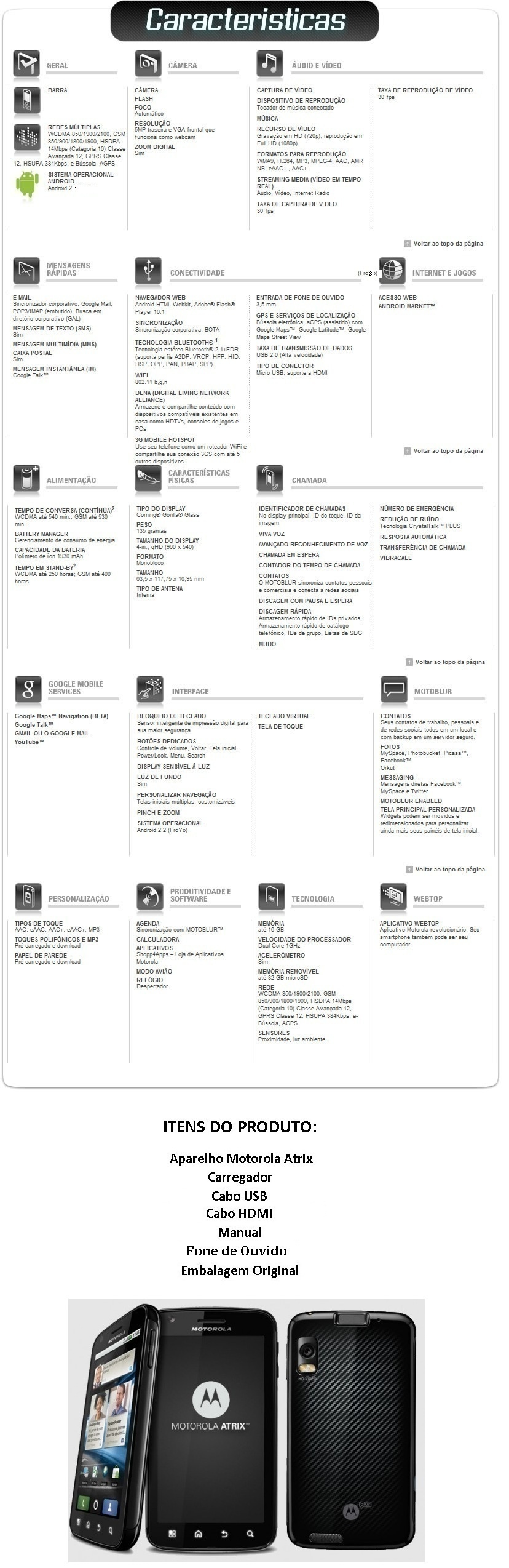 Com a Dock Multimídia, você conecta teclado, mouse, pendrive, sua TV HDMI e o Motorola Atrix™ se comporta como um computador, através do aplicativo webtop.